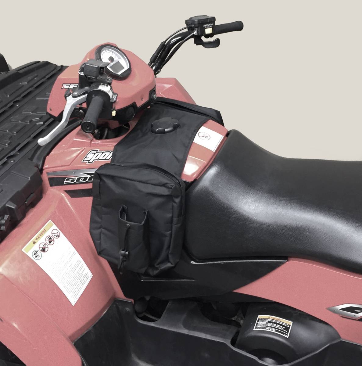 Perfect for storing extra parts and supplies, this bag is designed to be draped over the gas can and will fit just about any ATV.