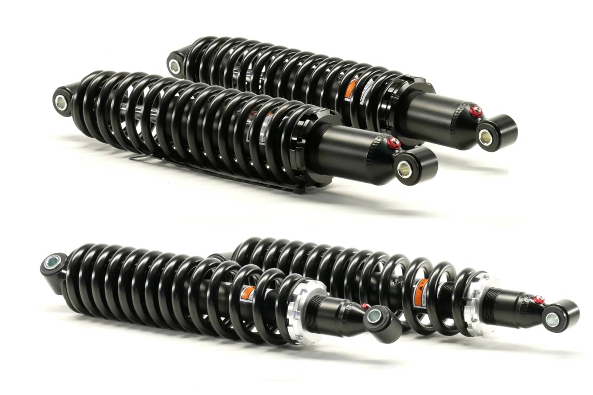 This is a full set of Monster Performance Parts monotube shocks for a Yamaha UTV.