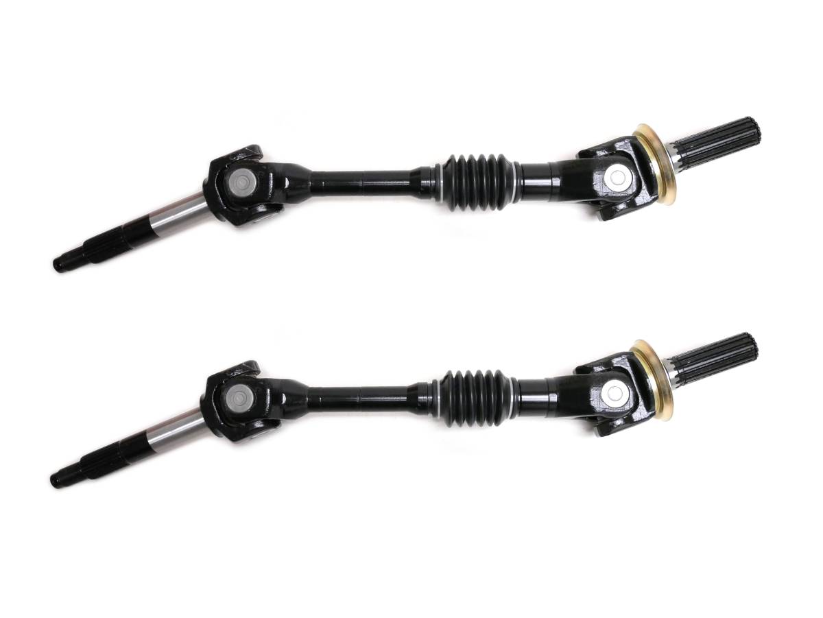 This is a set of new and fully assembled rear axles with wheel bearings for a Kawasaki Mule UTV.