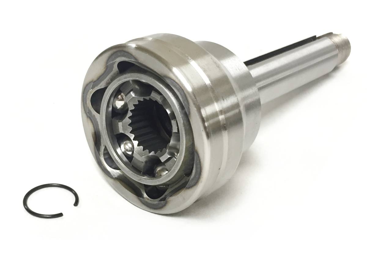 - CV joint fully assembled with race, cage, and ball bearings