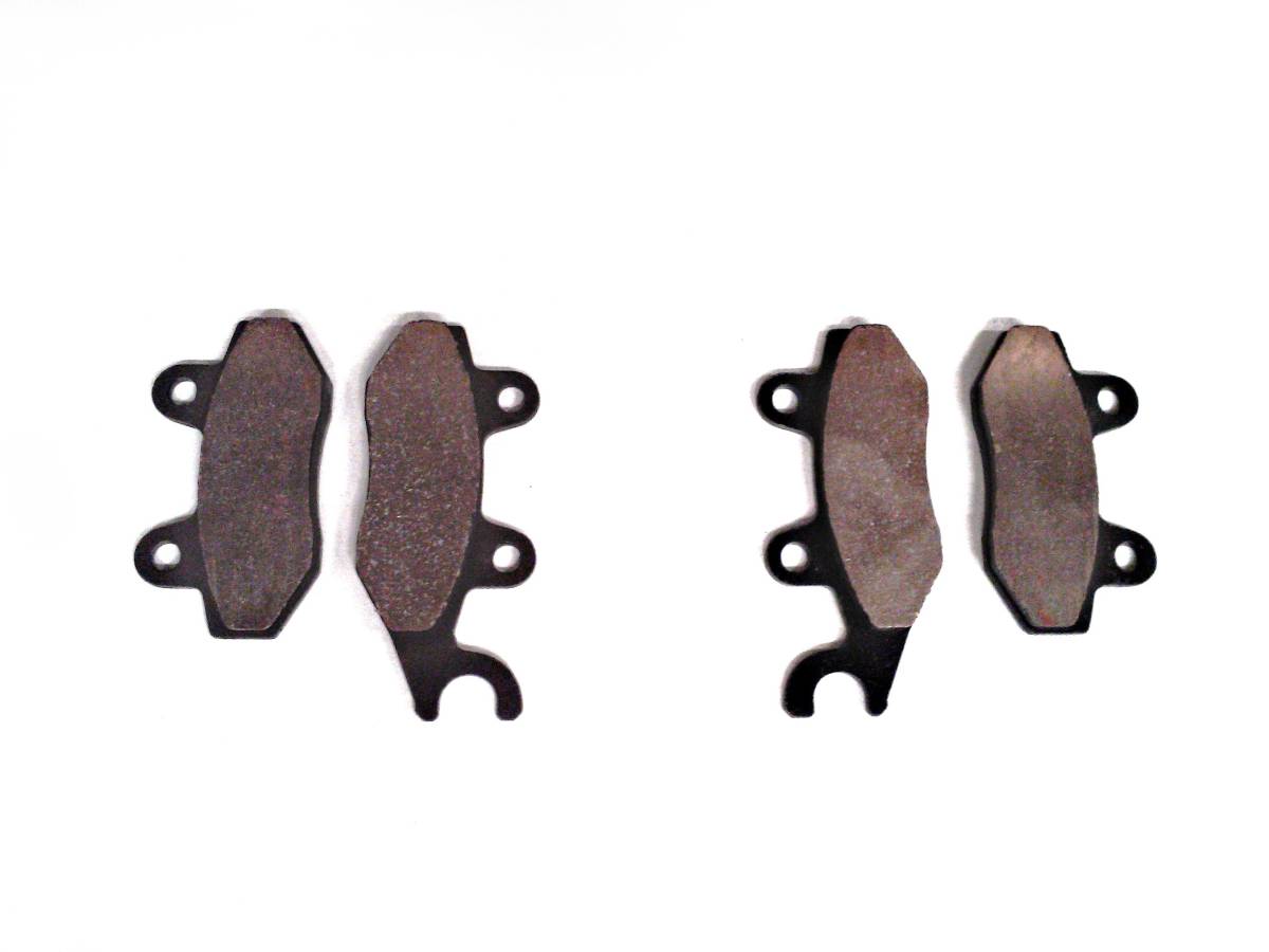 This is a set of new front disc brake rotors with pads for a Suzuki ATV.