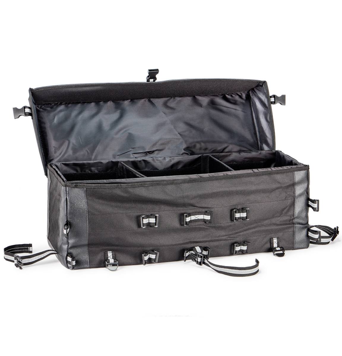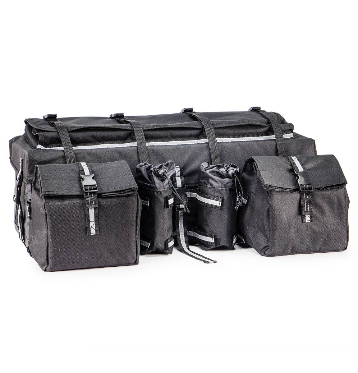 Cargo Bag for ATV Motorcycle Snowmobile Black Weather Resistant Canvas Multiple Pockets Removable Bags Dual Bottle Holders ATVPC