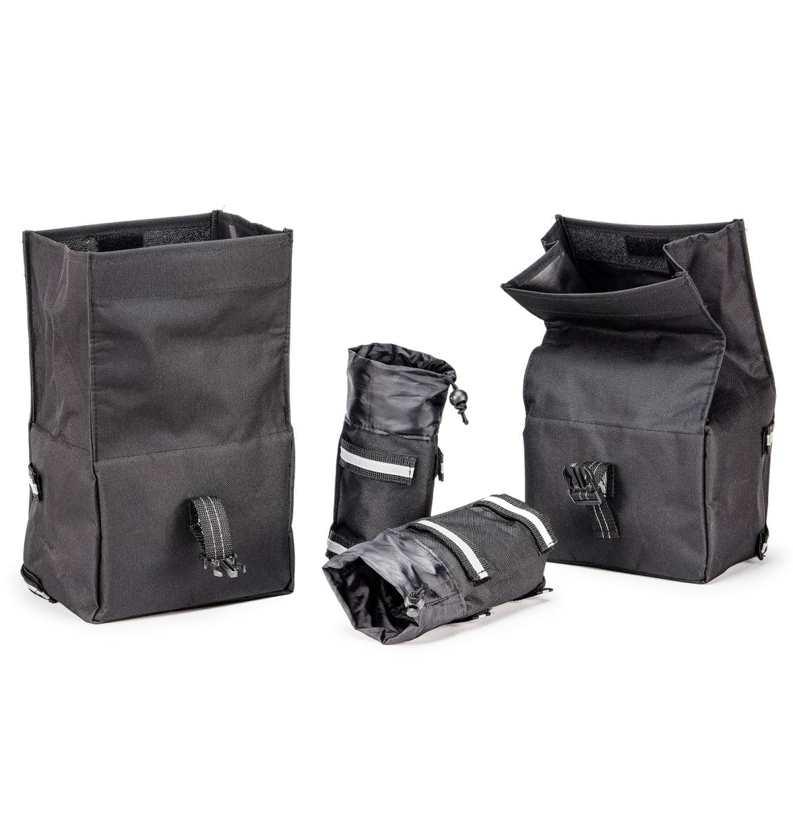 Includes 2 removable dual front bags with squeeze clips: 8.3" L x 5.5" W