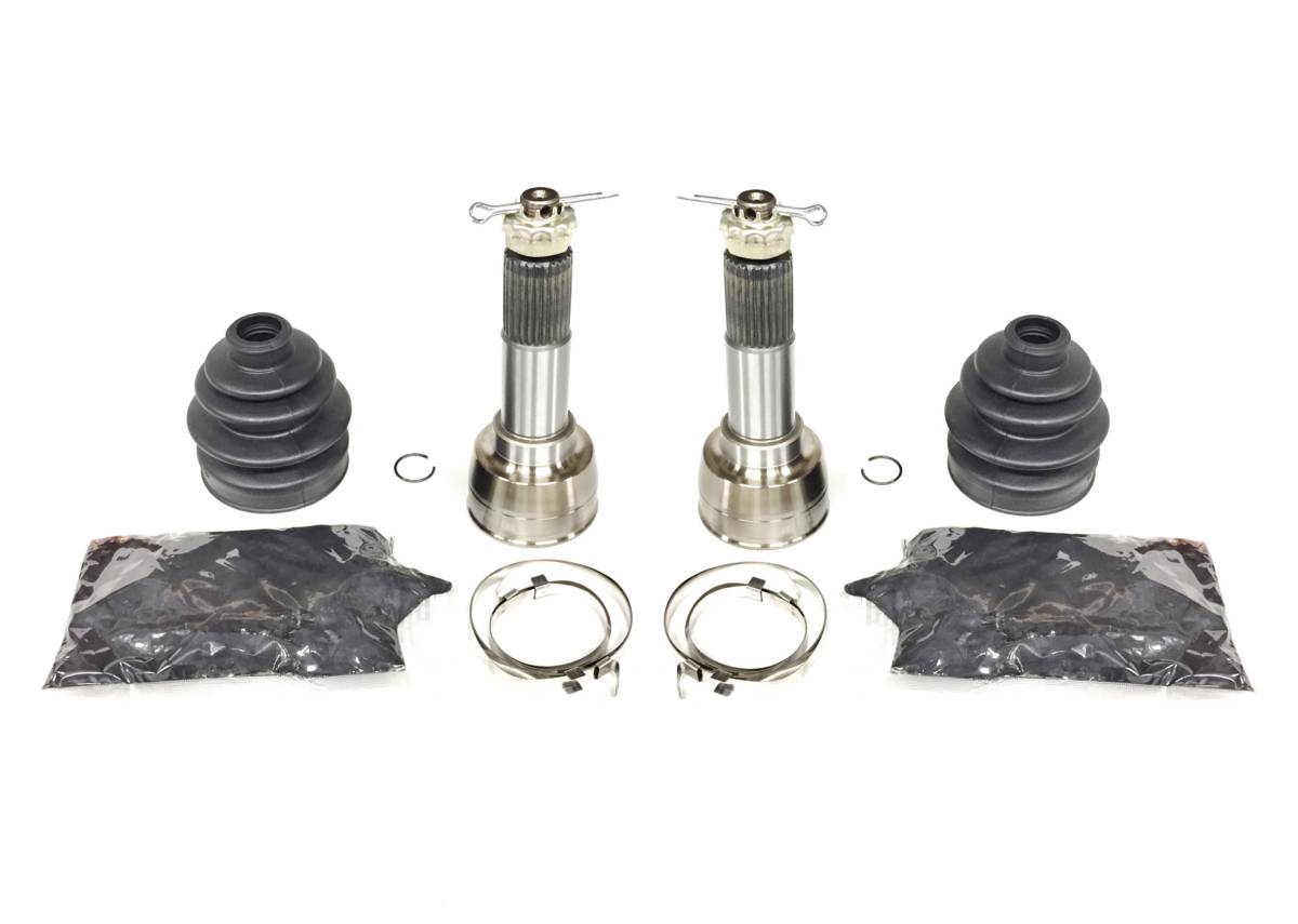 - Set includes: 2 fully assembled joints, 2 boots, 2 grease packs, & 4 clamps