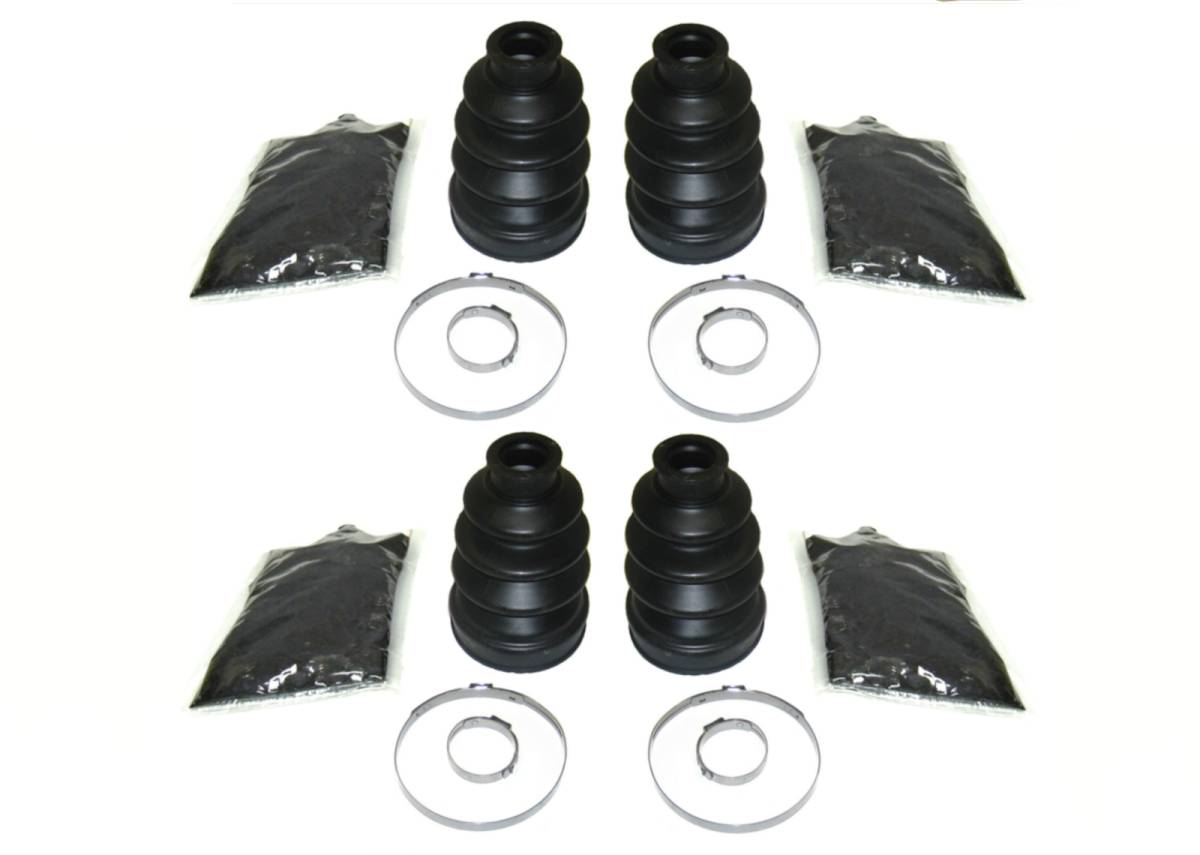 - Set includes 4 boots, 4 grease packs, and 8 clamps