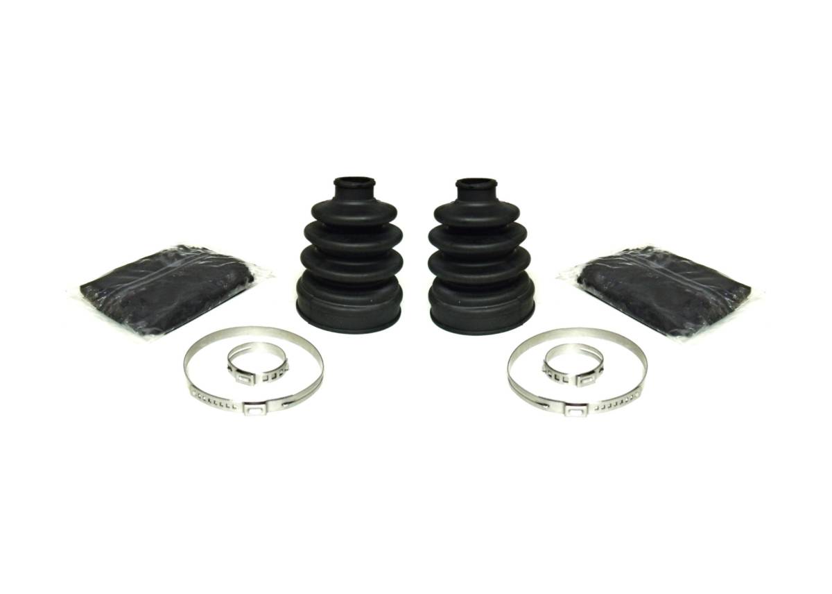 - Set includes 2 boots, 2 grease packs, 4 clamps