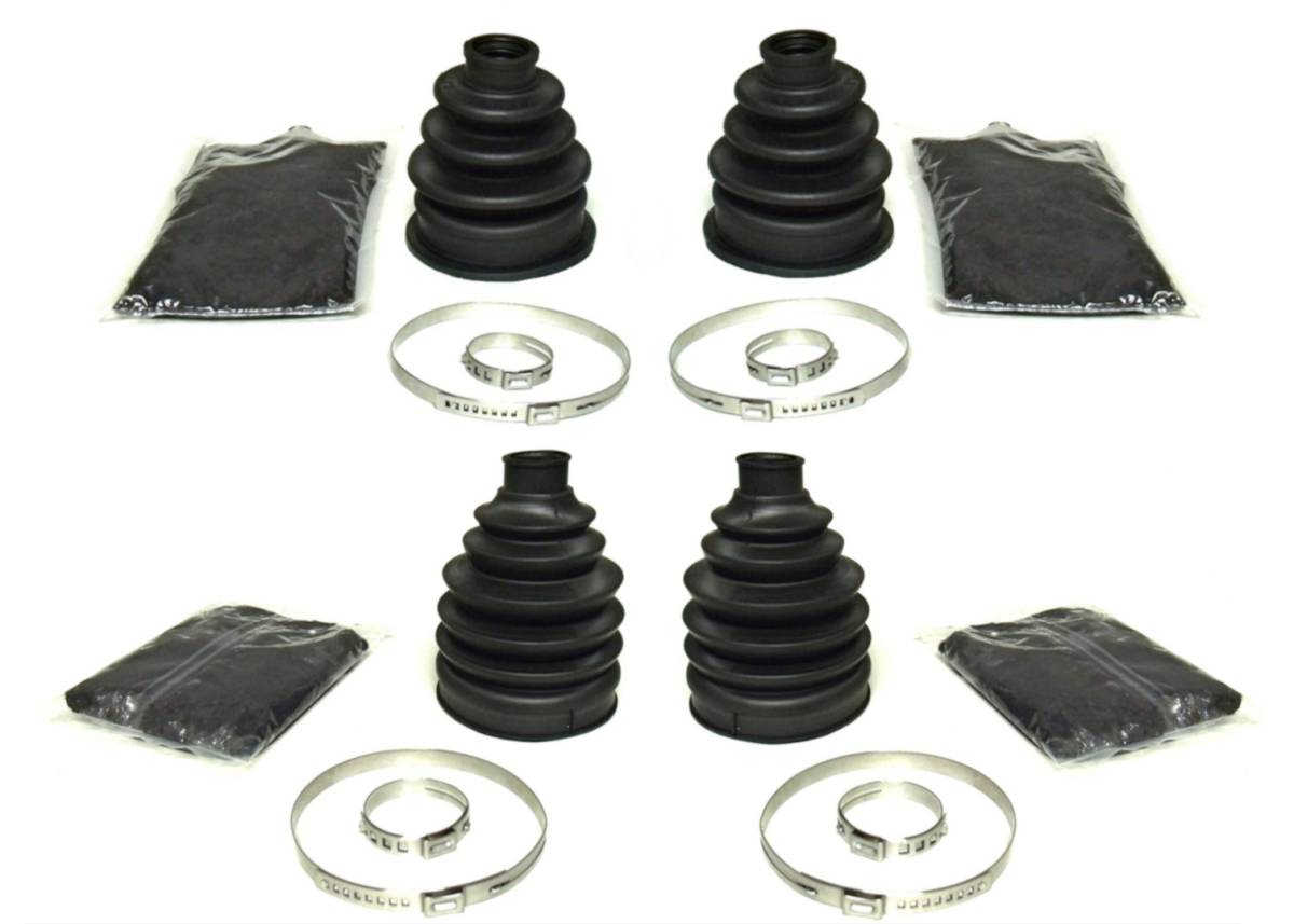 - Set includes 4 boots (2 inner & 2 outer), 4 grease packs, 8 clamps