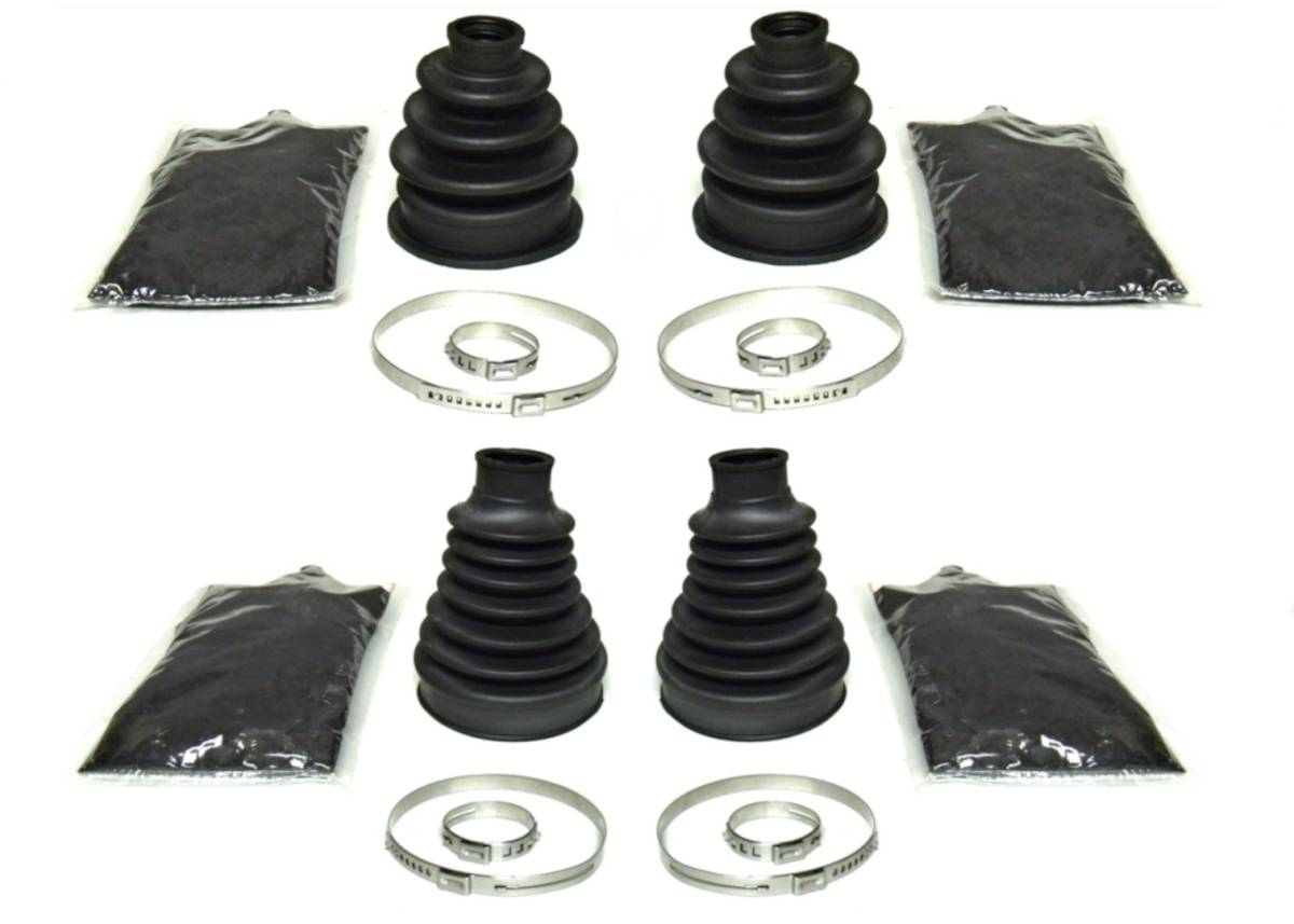 - Set includes 4 boots (2 outer & 2 inner), 4 grease packs, 8 clamps