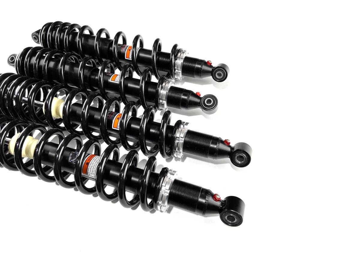 This is a full set of Monster Performance Parts monotube shocks for a Yamaha UTV.