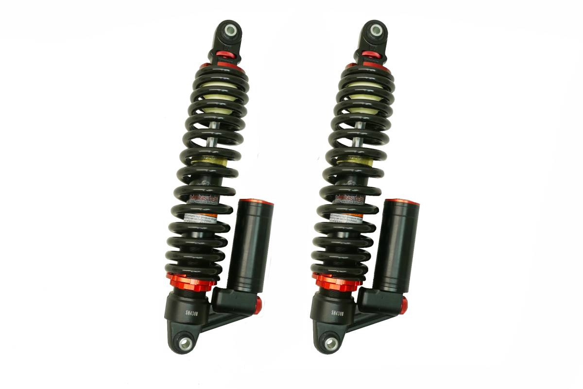 This is a pair of Monster Performance Parts monotube piggyback shocks for a CFMOTO ZFORCE.