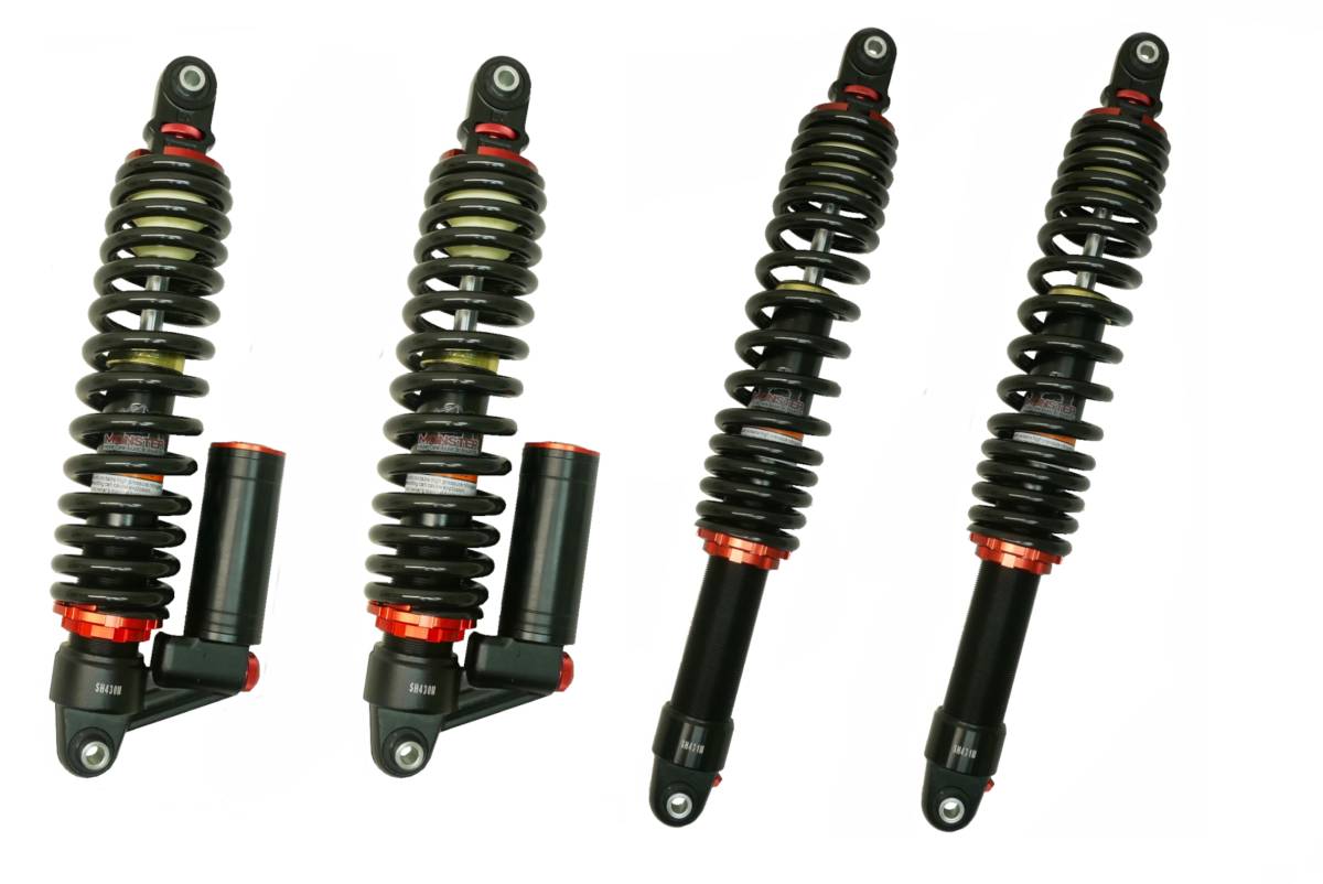 This is a full set of Monster Performance Parts monotube shocks for a CFMOTO.