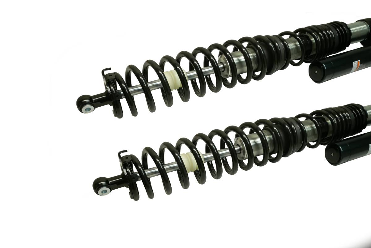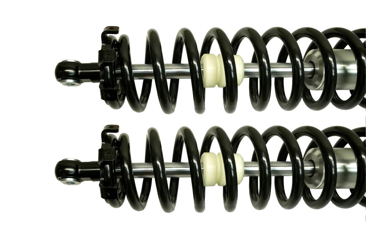- High-strength monotube shocks with a piggyback design for greater heat dissipation, consistent damping force, and a superior flow rate