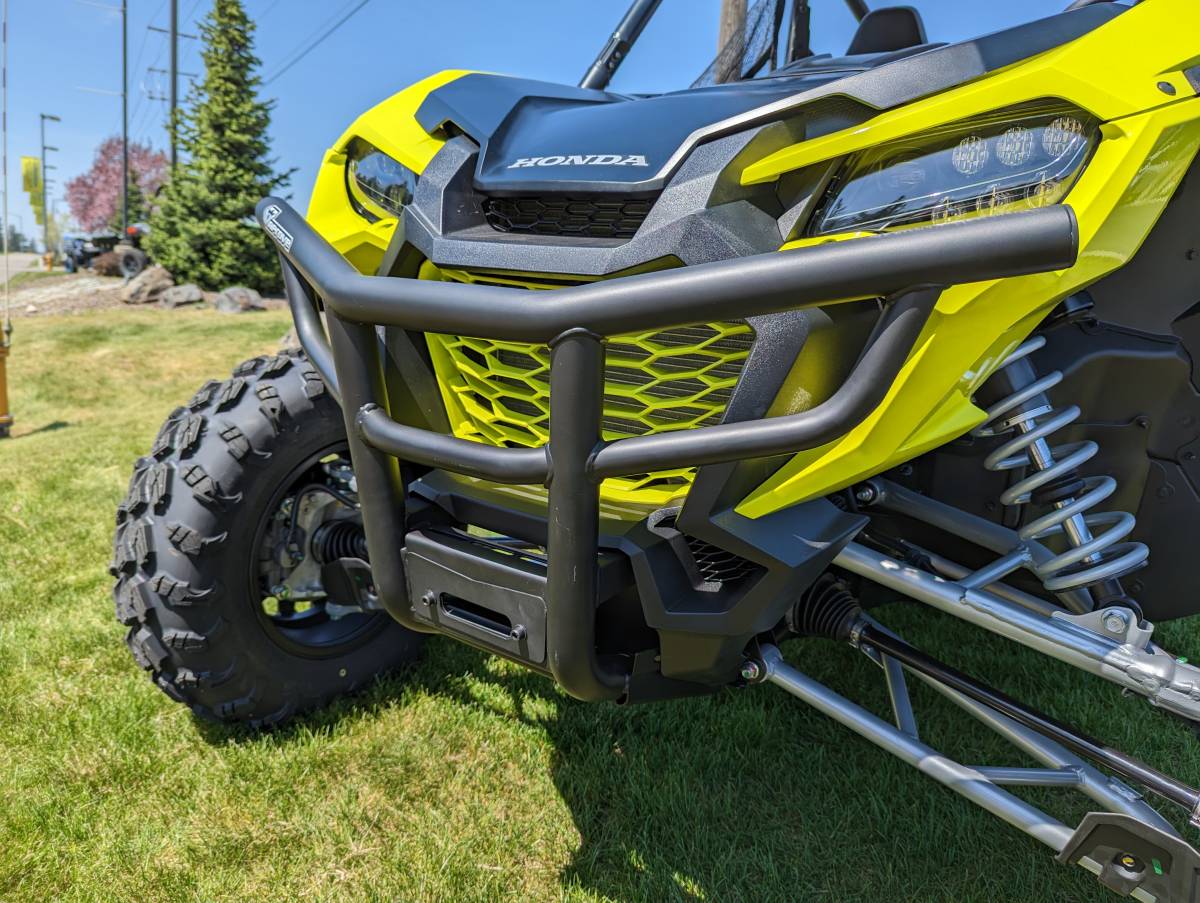 The Aprove Tercel Winch Bumper is designed to add style, utility, and protection to the Honda® Talon 1000X and 1000R. Constructed of 1.75” and 1.25” diameter heavy-duty steel tubing, this bumper features a built-in winch mount to accommodate most winches rated up to 4500 lbs, with 4-hole 4.875”x3” and 6.60”x3” bolt patterns. Integrated light tabs are included as standard.